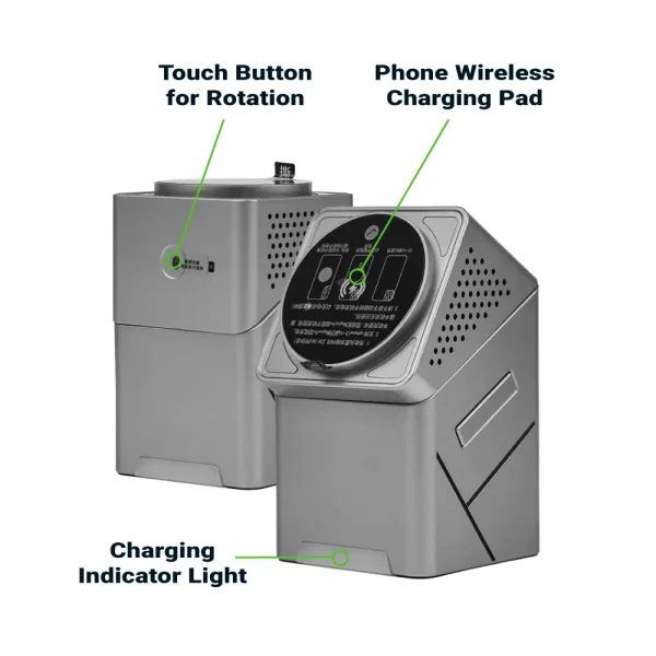 Sleek and functional, this 3-in-1 Rotating Charging Station in silver offers 15W fast wireless charging for your phone, plus dedicated zones for earbuds and smartwatches. Features include a touch-controlled rotating base, built-in N52 magnets, and Qi-standard compatibility—all packed in a stylish, compact design.
