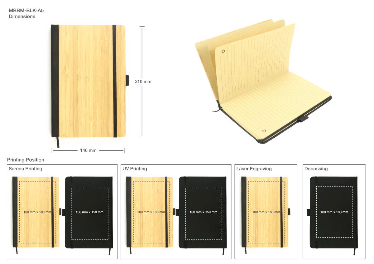 Eco-Friendly A5 size Bamboo Notebook with Branding Options.
