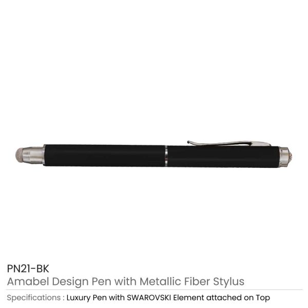 Amabel design stylus metal pen is a specially designed luxury pen. It is created with a metallic material. Thus, it is durable. This pen comprises a colorful metal barrel. Apart from the barrel, it also comprises a silver tip and chrome clip. It comprises a metallic fiber stylus. Thus, this stylus gives a smooth flow on your smartphones. So, it’s a perfect logo personalized pen with a stylus. The chrome clip at the end of the pen works like a holder. Thus, you can attach the pen to your shirt or bag. The SWAROVSKI element is attached to it. It provides a crystalline look. Thus, you can also use this personalized pen with a stylus for business promotion.