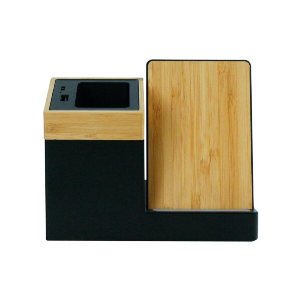 Bamboo Desktop Pen Holder with 15W Wireless Charger & LED Logo