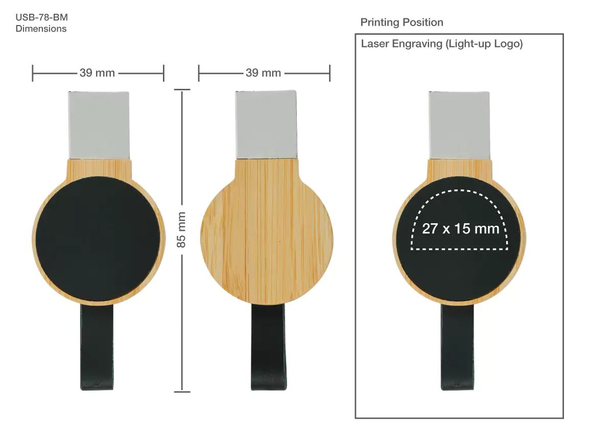 Embrace a blend of modern technology and eco-conscious design with the Bamboo Round LED Logo USB Drive. Featuring a sleek, round bamboo casing and a vibrant LED logo display, this 64GB USB drive offers the perfect combination of style, sustainability, and performance. Whether you’re transferring important files, promoting your brand, or gifting personalized tech accessories, this compact and fast USB drive delivers reliable performance with a distinctive, eco-friendly look.