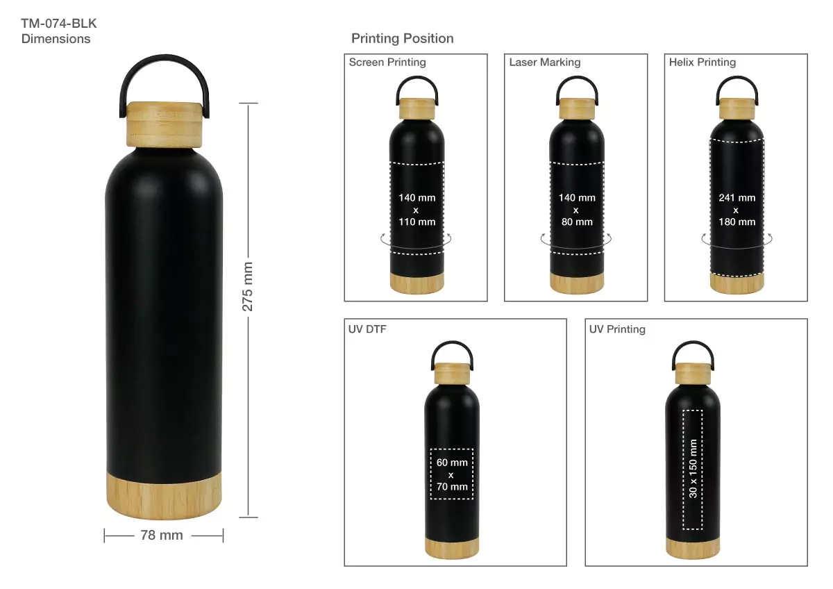 Stay refreshed on the go with our Double Wall SS Vacuum Bottle. Designed for both style and functionality, this sleek black bottle features a stunning bamboo base and lid, making it the perfect companion for your adventures, whether you’re hiking, commuting, or relaxing at home.