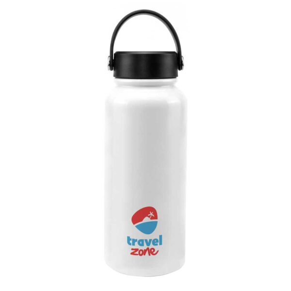Double-wall SS insulating vacuum flask with twist-off lid and carry handle, 800ml Capacity.