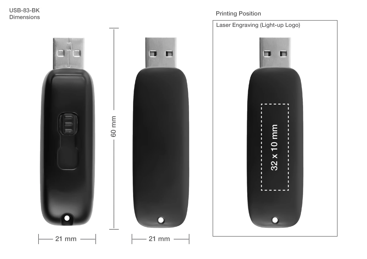 Black LED Logo USB Printing Area Details