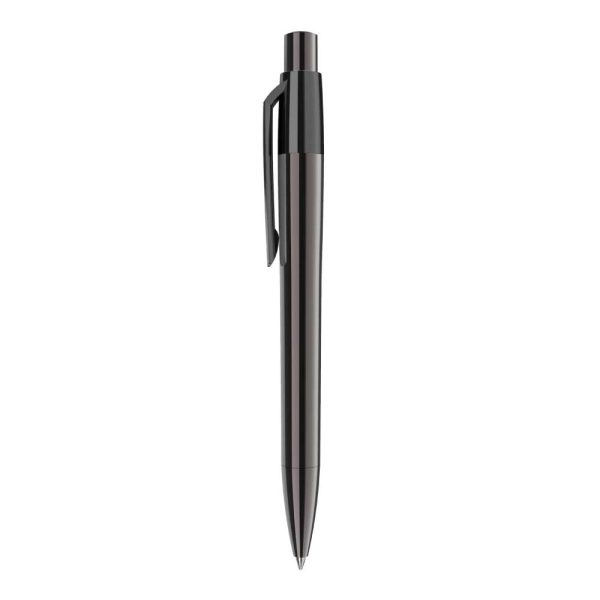 Branded Maxema metal pens are cool branded pens. They are crafted with reliable titanium metal material. Thus, they are durable and safe for use. Its barrel is specially crafted with grey finish metal. Thus, it has a glossy diamond mirror face finish on the whole barrel. The barrel and tip are in the same grey color. However, the pen also has a push button which is also grey. Thus, it gives the pen a luxurious look. It comes with screen printing and UV printing options. Moreover, there are multiple printing options for logo imprinting. Thus, you can customize these pens as luxury branded corporate gifts for your company.