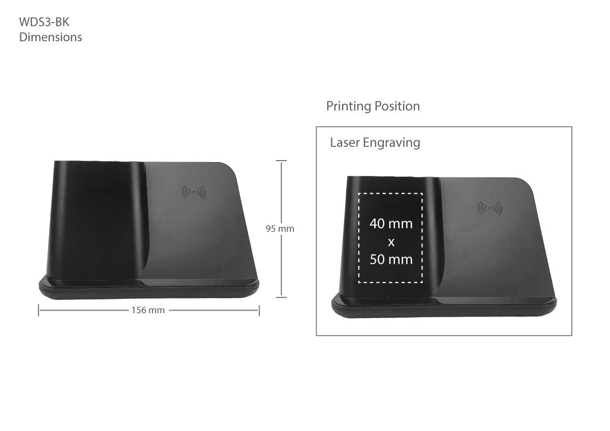 Functions: LED light for a light-up logo | a pens holder | a mobile holder | 5w wireless charger | with USB A & USB C charging ports.
