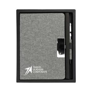 - Laser Marking – professional, durable branding on pen and notebook