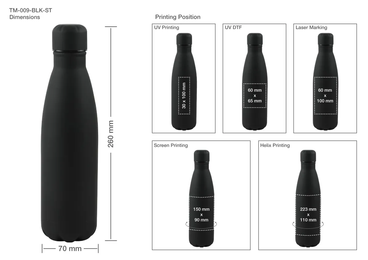 Premium Soft Touch Matt Cola Bottles in Stainless Steel, 500ml