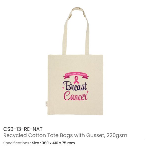 Eco-Friendly Support: Make a difference with every carry using our recycled cotton bags adorned with the Breast Cancer Awareness logo. Crafted from recycled cotton, these bags are a sustainable choice that helps reduce environmental impact while supporting a vital cause.
