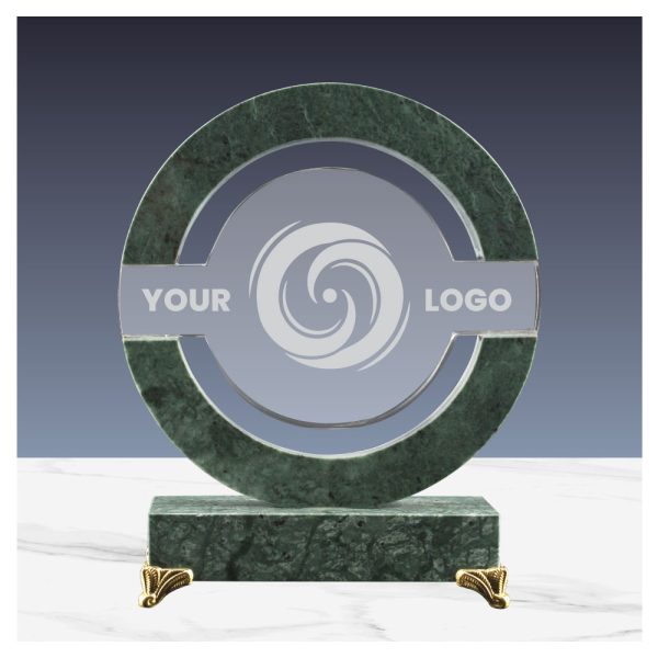 Round-Shaped Crystal and Marble Awards in Fiber Hardboard Box with Branding Options.