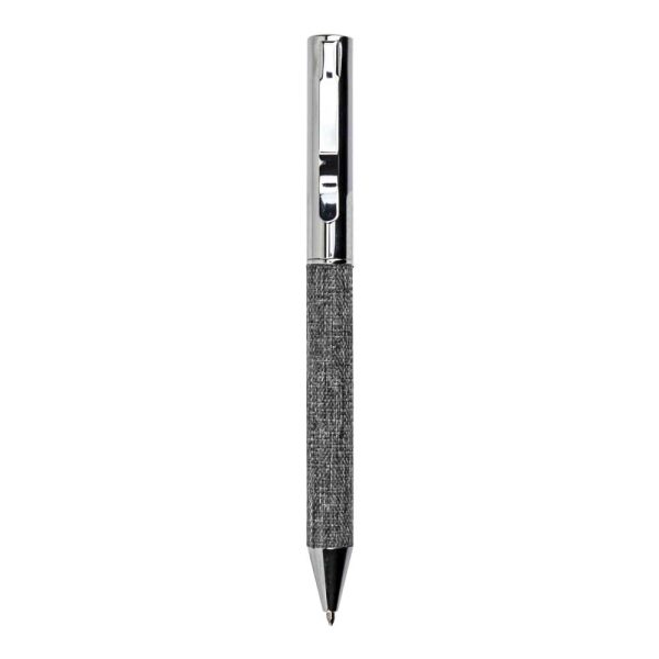 - RPET fabric-wrapped barrel with metal chrome cap, clip, and tip.