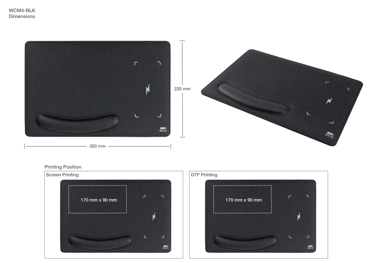 RPET material Mousepads with handrest and Wireless Charging Function (15W).