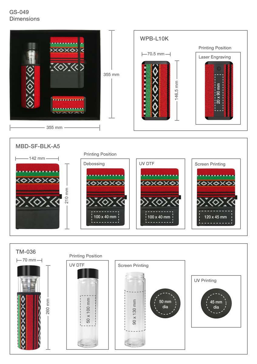 Gift set Combination: Glass Bottle (SKU: TM-036), A5 Notebook (SKU: MBD-SF-BLK-A5), Wireless Powerbank (SKU: WPB-L10K-SADU), Black Plain Gift Box (SKU: GB-BK-XXL)
