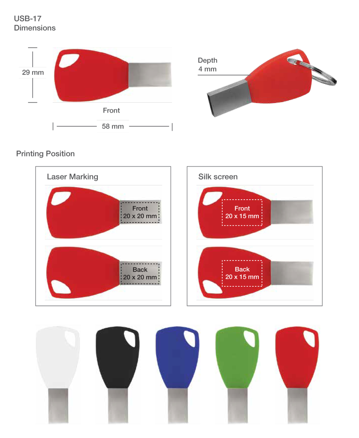 - Material: Metal + Silicone | Size: 58 x 30 x 4 mm | Capacity: 8 GB. | Item Weight: 0.012 kg