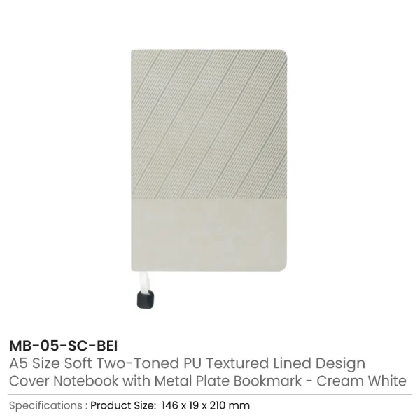 Soft PU Cover Notebooks in A5 Size with Metal Plate Bookmark