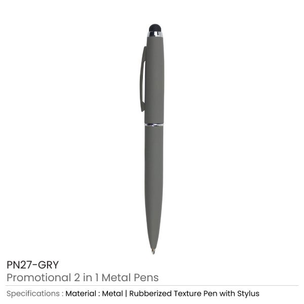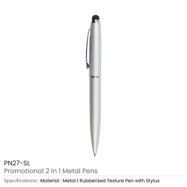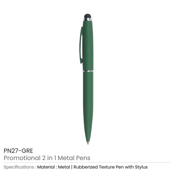 Stylus metal pens are cool and elegant pens. They had been created with a strong metallic material. Thus, they are durable and long-lasting. This pen comprises a colorful metallic barrel with a silver chrome ring in the middle. Both the barrel and tip are in the same color. The whole structure of the pen is rubberized.