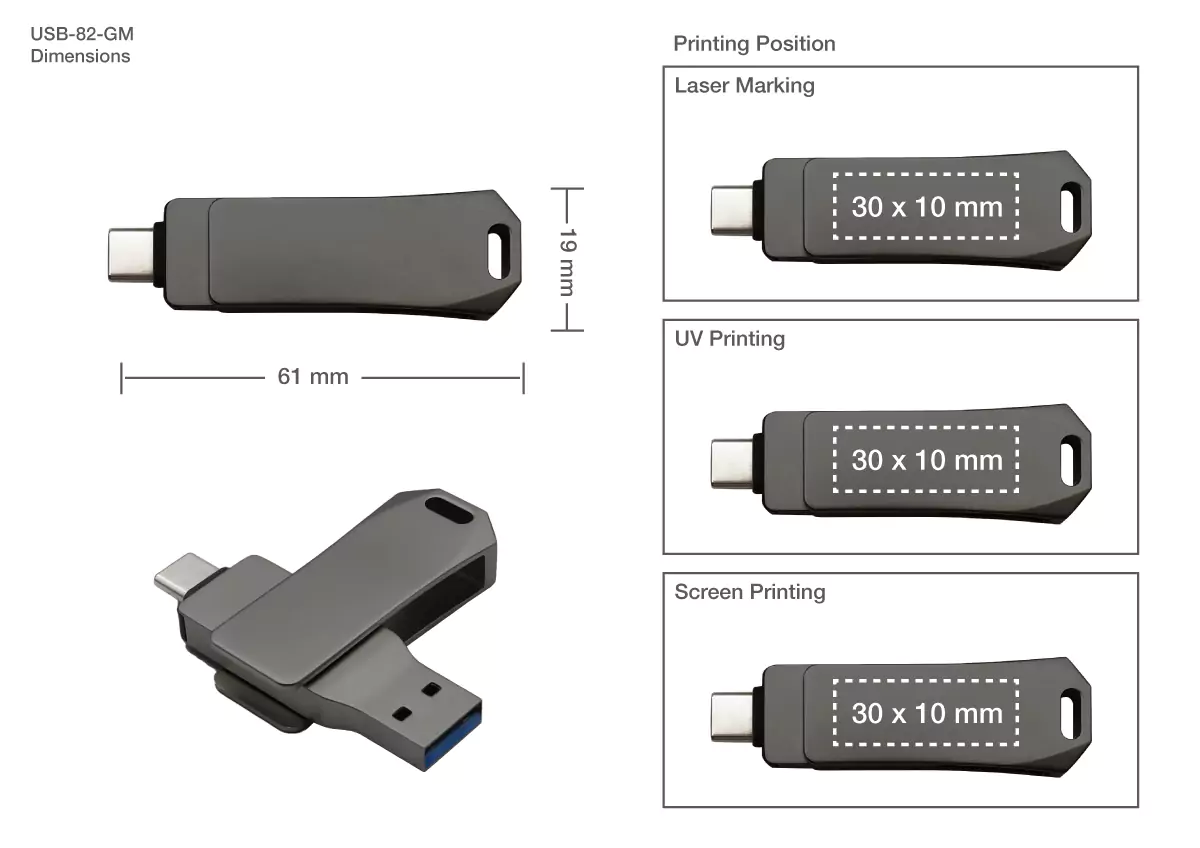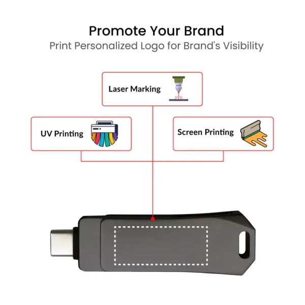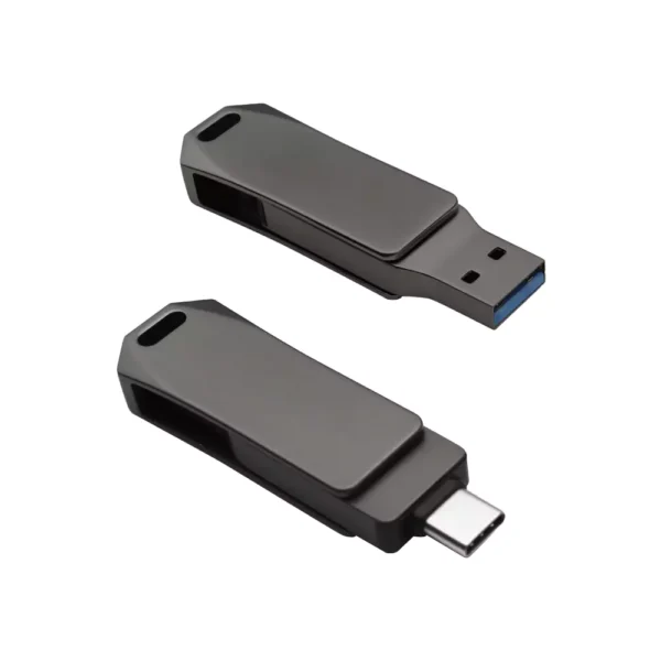 The Swivel OTG USB 64GB combines a sleek design with cutting-edge technology, featuring dual connectors (USB 3.0 and Type-C) for fast, seamless data transfer. With a stylish gun metal finish and a durable swivel design, it’s the perfect portable storage solution for both personal and professional use.