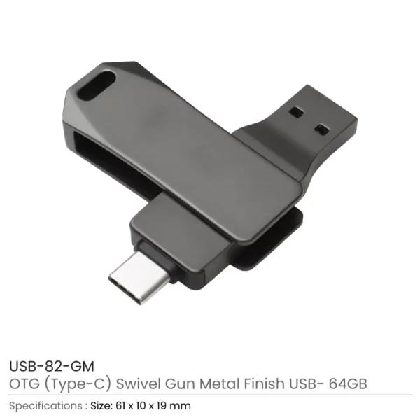 Swivel OTG USB in Gun Metal 64GB V. 3.0 Type C