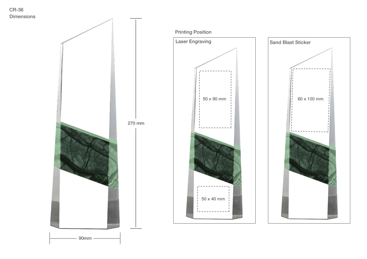 Vertical Shaped Crystal and Marble Awards in Fiber Hardboard Box with Branding Options.